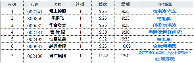4. 粤港澳 启动分析:央行等4部门发布《关于金融支持粤港澳大湾区建设的意见》。支持粤港澳大湾区内地研究区块链、大数据、人工智能等创新技术及其成熟应用在客户营销、风险防范和金融监管等方面的推广。而广东要推出期货交易所。 爆发一般,不过龙头还是可以高看一板。
