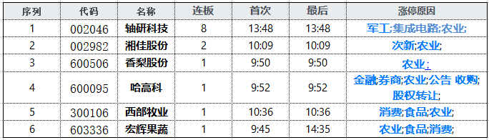 7. 农业 启动分析:国家粮食和物资储备局:夏季粮油生产形势较好,有望获得好收成,预计产量将保持在较高水平;收购量稳中有升,预计小麦收购量1400亿斤左右、早籼稻200亿斤左右、油菜籽240万吨左右。 湘佳股份:近端次新+农业,而且还是质优股,一季度业绩又暴增,趋势股。
